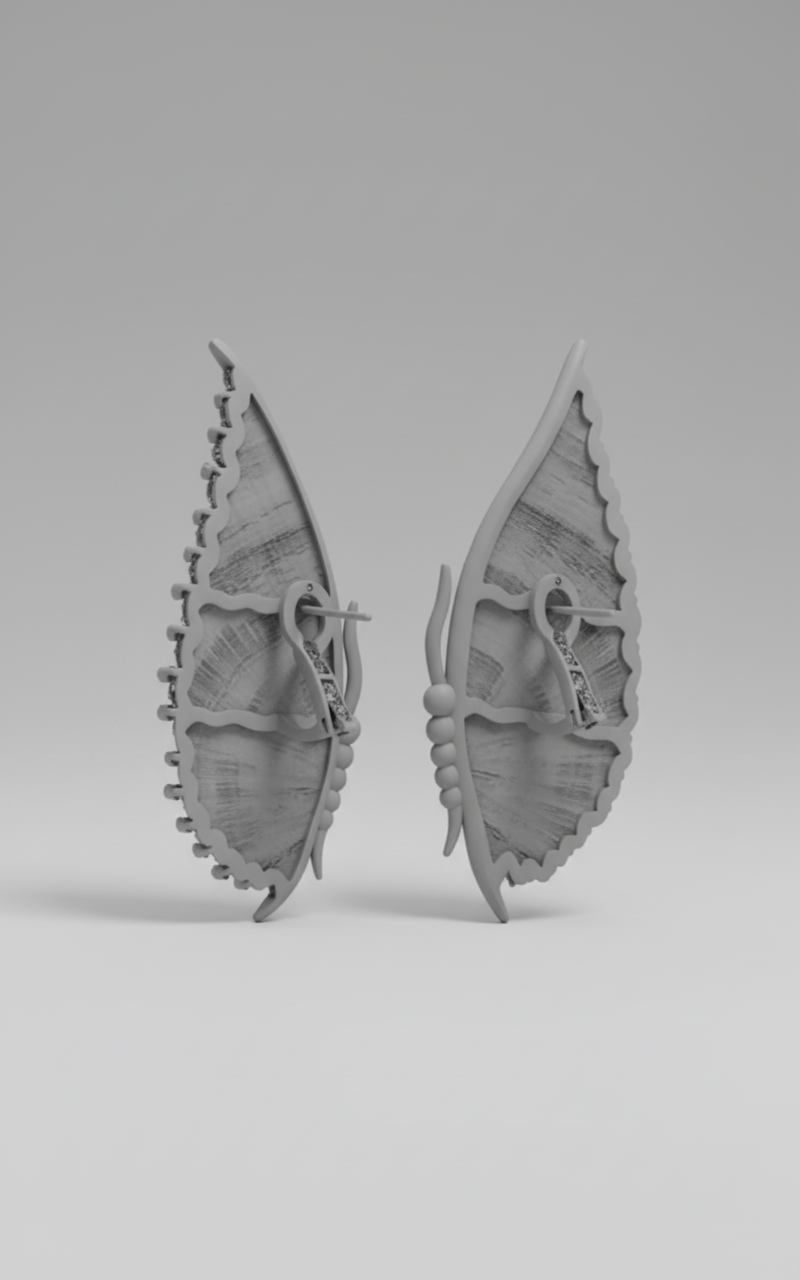 This sophisticated CAD model captures the ethereal motion of a butterfly, meticulously accented with diamond placements. Its intricate digital framework allows for a seamless transition from refined daytime elegance to captivating evening allure, ensuring a striking aesthetic impact.
