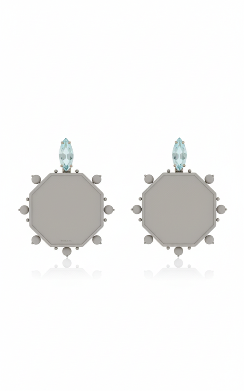 This exquisite CAD model of statement earrings, meticulously designed for a radiant metallic foundation, embodies sophisticated artistry. The intricate 3D rendering ensures a distinguished presence, engineered to effortlessly transition from daytime elegance to evening allure.