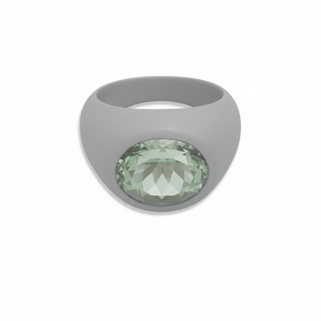 Explore the sophisticated CAD rendition of a prominent 7.49 carat green tourmaline statement ring, meticulously designed for yellow gold settings, serving as a foundational blueprint for your unique custom jewelry engineering project.