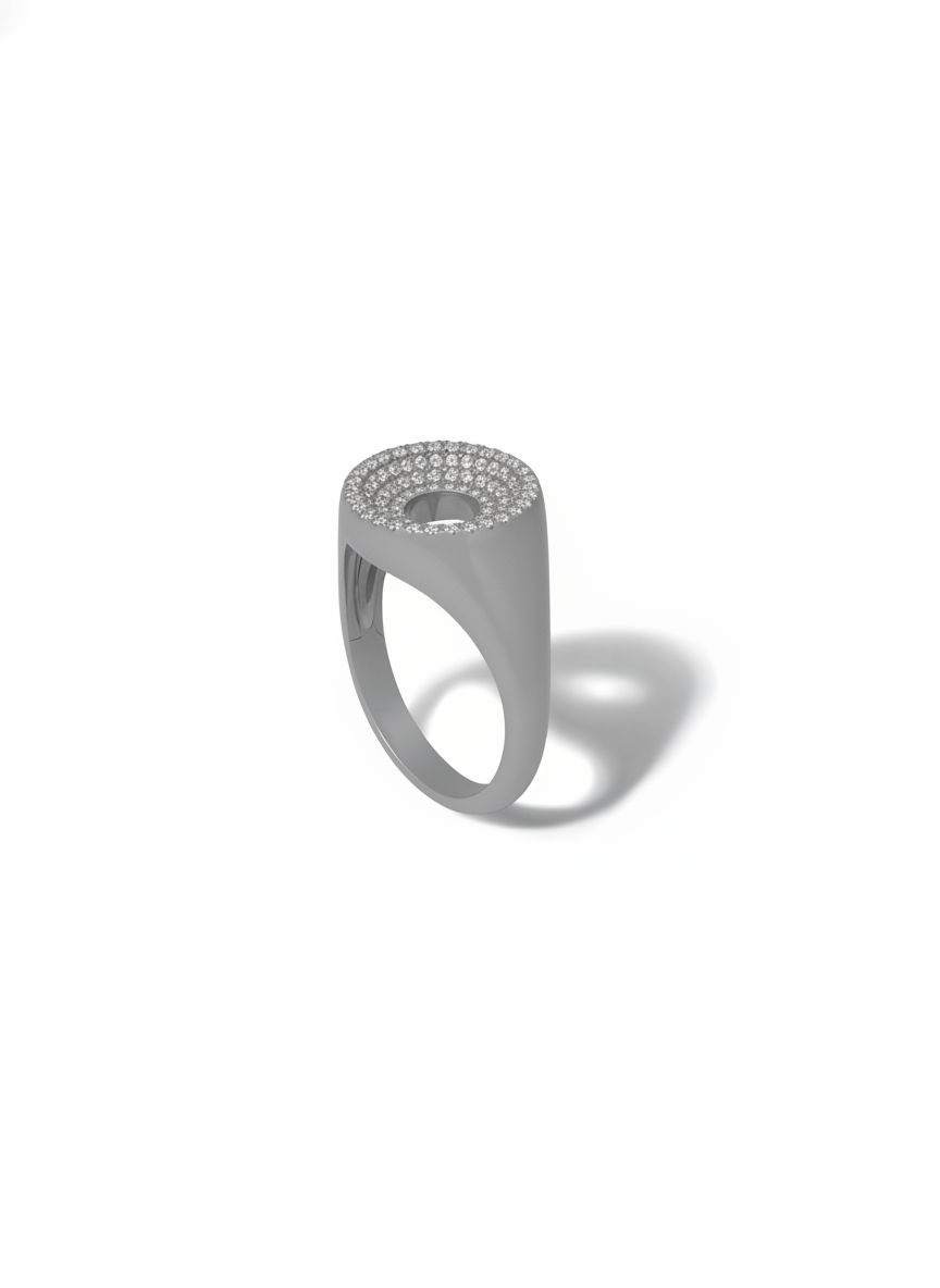 Precision Drew Full Pav Signet ring CAD Study is presented as a statement ring prepared for CAD modeling, 3D jewelry development, and production planning. This CAD concept keeps the jewelry direction elegant while translating it into a production-focused 3D study.