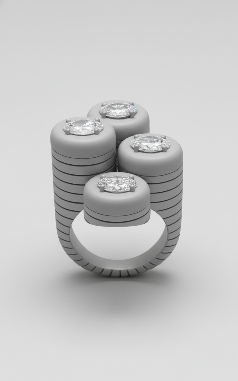 StatementPrecision-engineered through advanced CAD, this statement ring model features a robust 18K yellow gold foundational structure, meticulously designed to house a prominent chalcedony and delicate diamond embellishments, ensuring a commanding, singular aesthetic.
