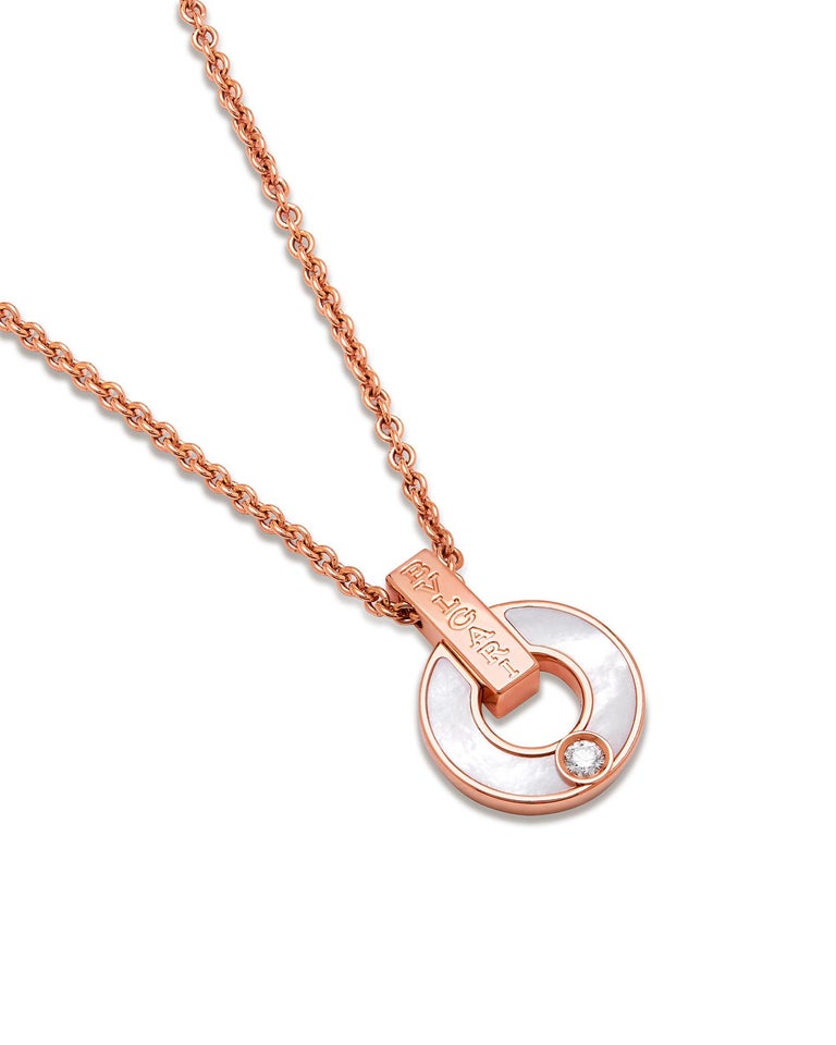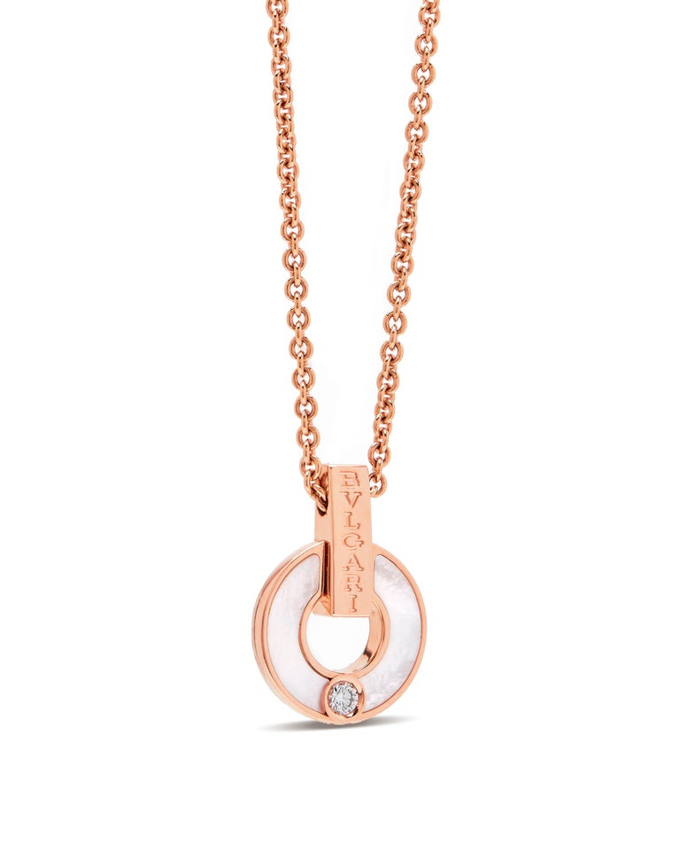 As an original brand design, Bvlgari Bvlgari Mother of Pearl and diamond pendant stands out through its balance of silhouette, material contrast, and brand-specific styling cues. This reference page helps clients identify the visual direction they want to reinterpret through custom production.