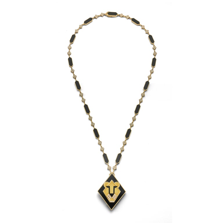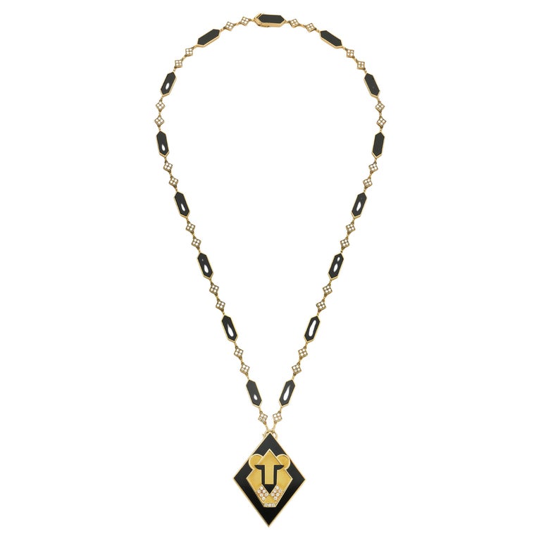 As an original brand design, Bvlgari Onyx & Diamond Lion Necklace stands out through its balance of silhouette, material contrast, and brand-specific styling cues. This reference page helps clients identify the visual direction they want to reinterpret through custom production.