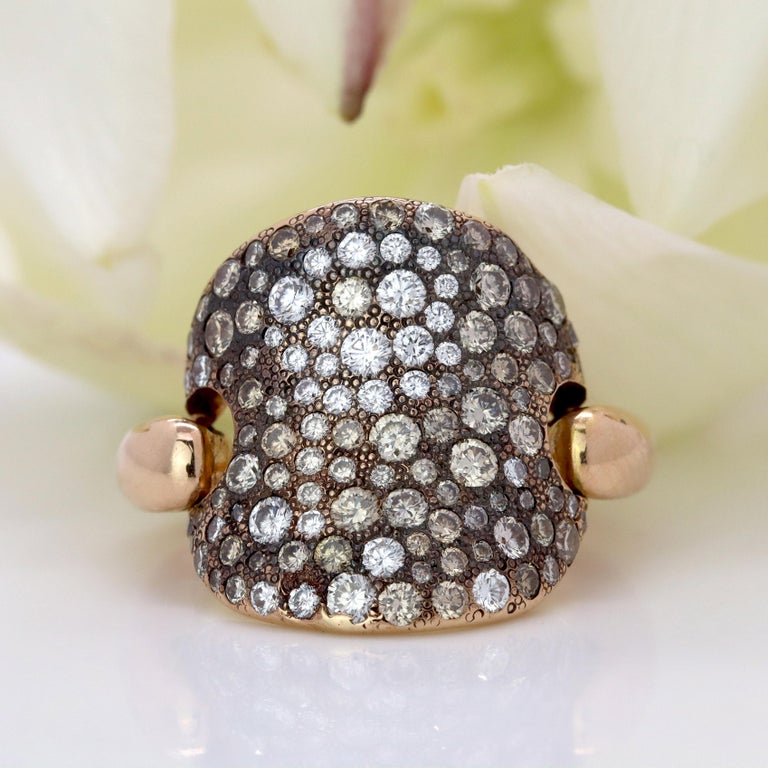 We keep Pomellato Modern Brown Diamonds 18 Karat Rose Gold Large Curved Pomellato Sabbia Ring in the gallery as a visual benchmark for custom development. Rather than treating it as a retail listing, the page explains how a similar direction can be adapted into a custom-made ring based on sketches, photos, or client-specific requirements.