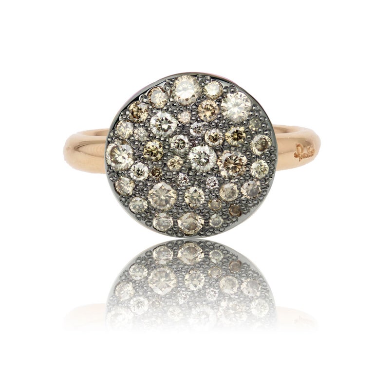As an original brand design, Pomellato Modern Cognac Diamonds 18 Karat Rhodium Rose Gold Large Pomellato Sabbia Ring stands out through its balance of silhouette, material contrast, and brand-specific styling cues. This reference page helps clients identify the visual direction they want to reinterpret through custom production.