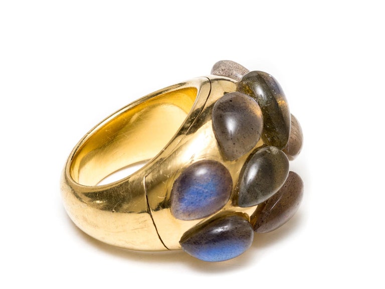 As an original brand design, Pomellato Labradorite Ring stands out through its balance of silhouette, material contrast, and brand-specific styling cues. This reference page helps clients identify the visual direction they want to reinterpret through custom production.