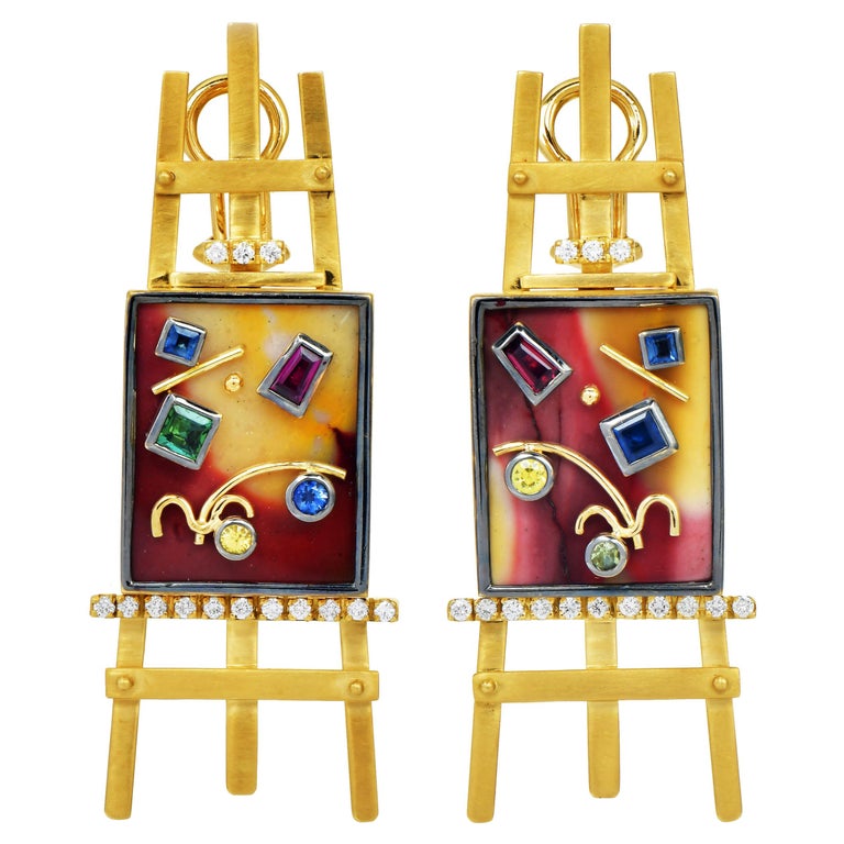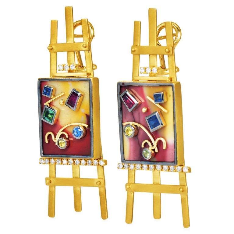 Sauer Designer 18K Yellow Gold Multigemstone Easel Painting Earrings is presented here as a design reference for custom jewelry manufacturing in Thailand. If you like the overall look, our team can interpret the idea in a similar aesthetic while adapting the piece to your preferred materials, proportions, and budget.