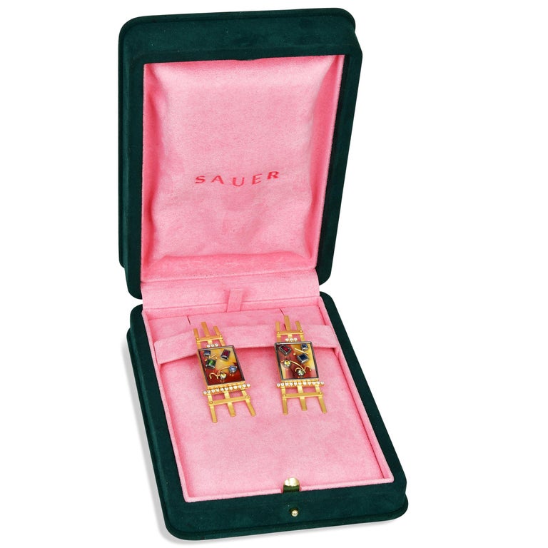This page keeps Sauer Designer 18K Yellow Gold Multigemstone Easel Painting Earrings visible as a brand-specific reference while production discussion is handled by our Bangkok jewelry team.