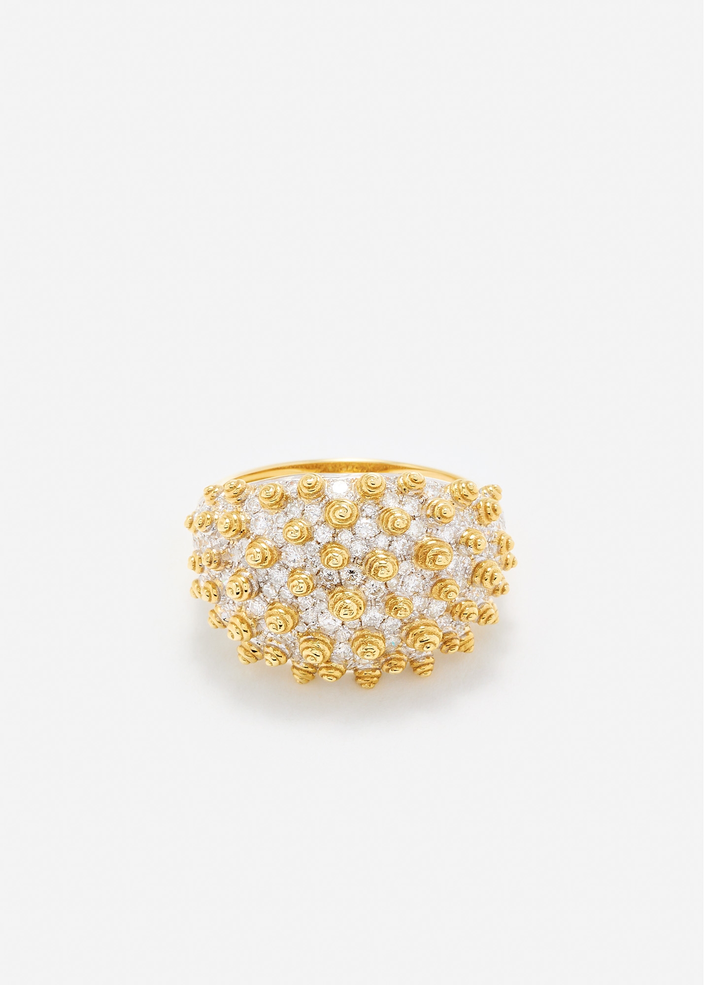 Yvonne Leon Ring Picots Diamants - Diamonds and yellow gold - Yvonne Léon is presented here as a design reference for custom jewelry manufacturing in Thailand. If you like the overall look, our team can interpret the idea in a similar aesthetic while adapting the piece to your preferred materials, proportions, and budget.