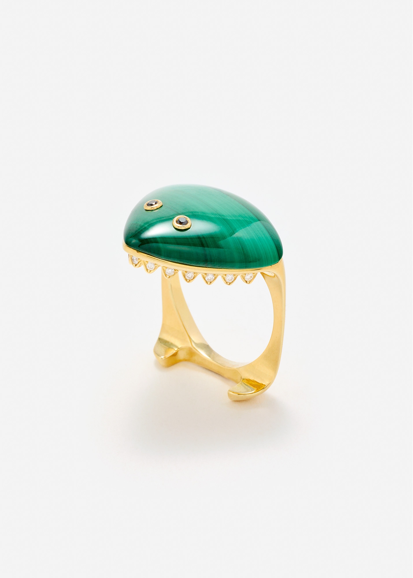 Our factory in Bangkok, Thailand uses branded reference pages like Yvonne Leon Ring Requin Dentée - Diamonds, malachite and yellow gold - Yvonne Léon to explain how a familiar design language can become a custom order instead of a copied retail item.