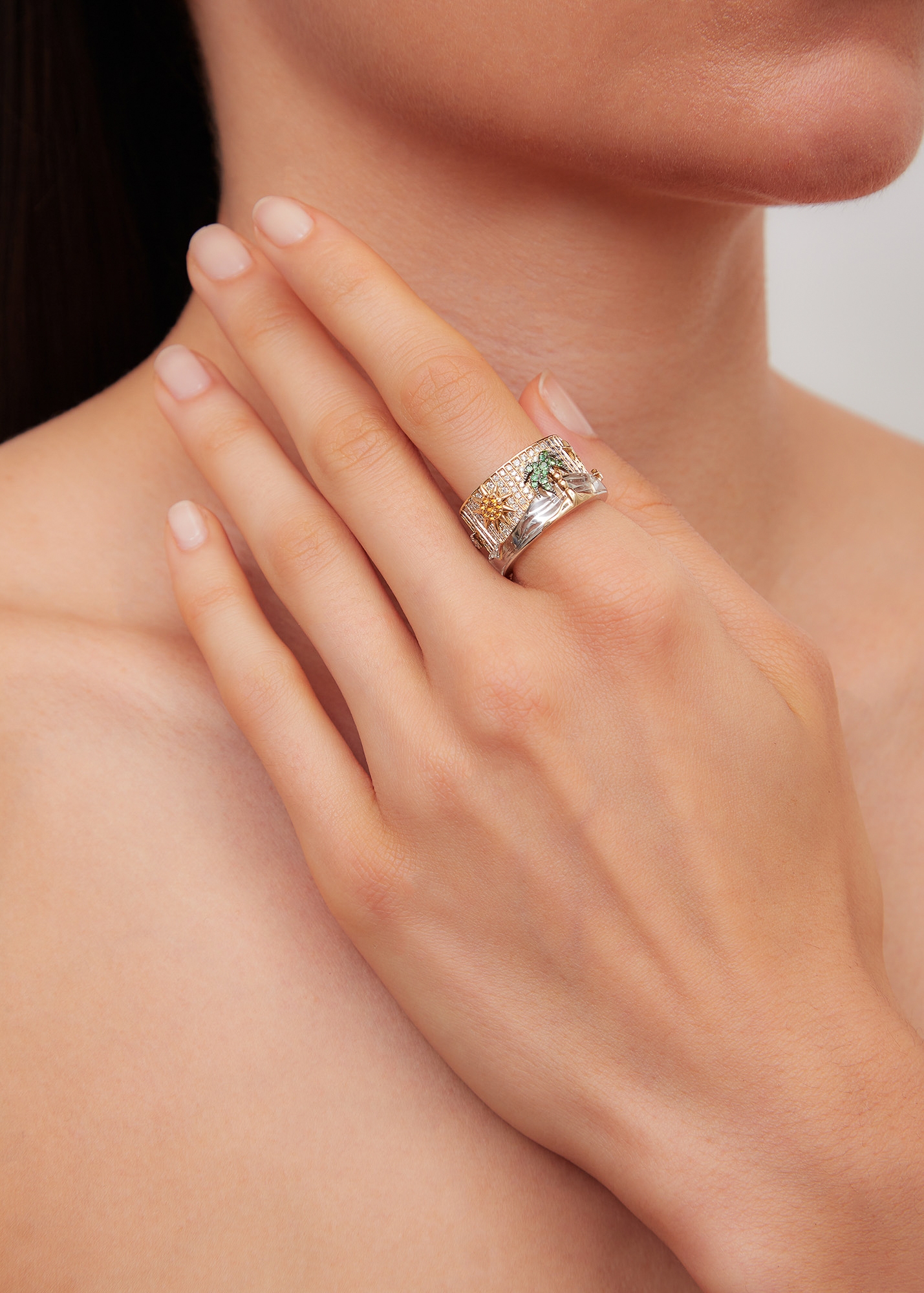 We keep Yvonne Leon Signet Ring Coeur Mimosa - Citrines, tsavorites, enamel and yellow gold - Yvonne Léon in the gallery as a visual benchmark for custom development. Rather than treating it as a retail listing, the page explains how a similar direction can be adapted into a custom-made ring based on sketches, photos, or client-specific requirements.